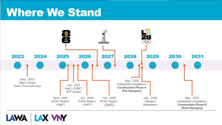 What's funny is that LAWA also doesn't seem to think we need the LAX-pressway finished to host the World Cup — or the Olympics. After taking a construction pause in 2028, the project won't even be complete until 2030!