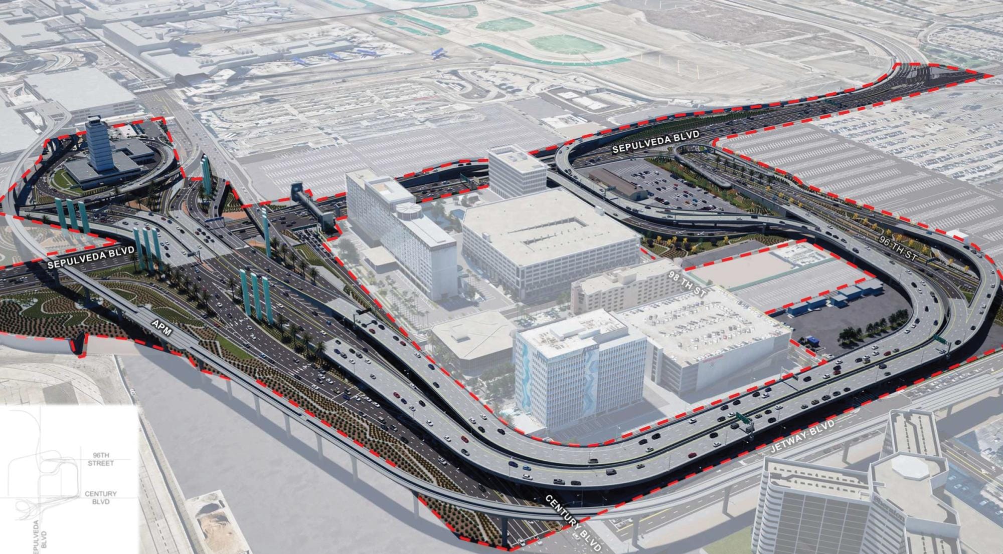 Yes, the very same airport where we just spent $2 billion — actually, more like $3 billion, plus another $900 million if you count Metro's investment in the LAX station; so let's just say $4 billion — to make cars go away. After all that talk about car-free connections for the transit-first games, LAX is dropping 5.8 lane miles of roadways in one of the most congested areas of LA.