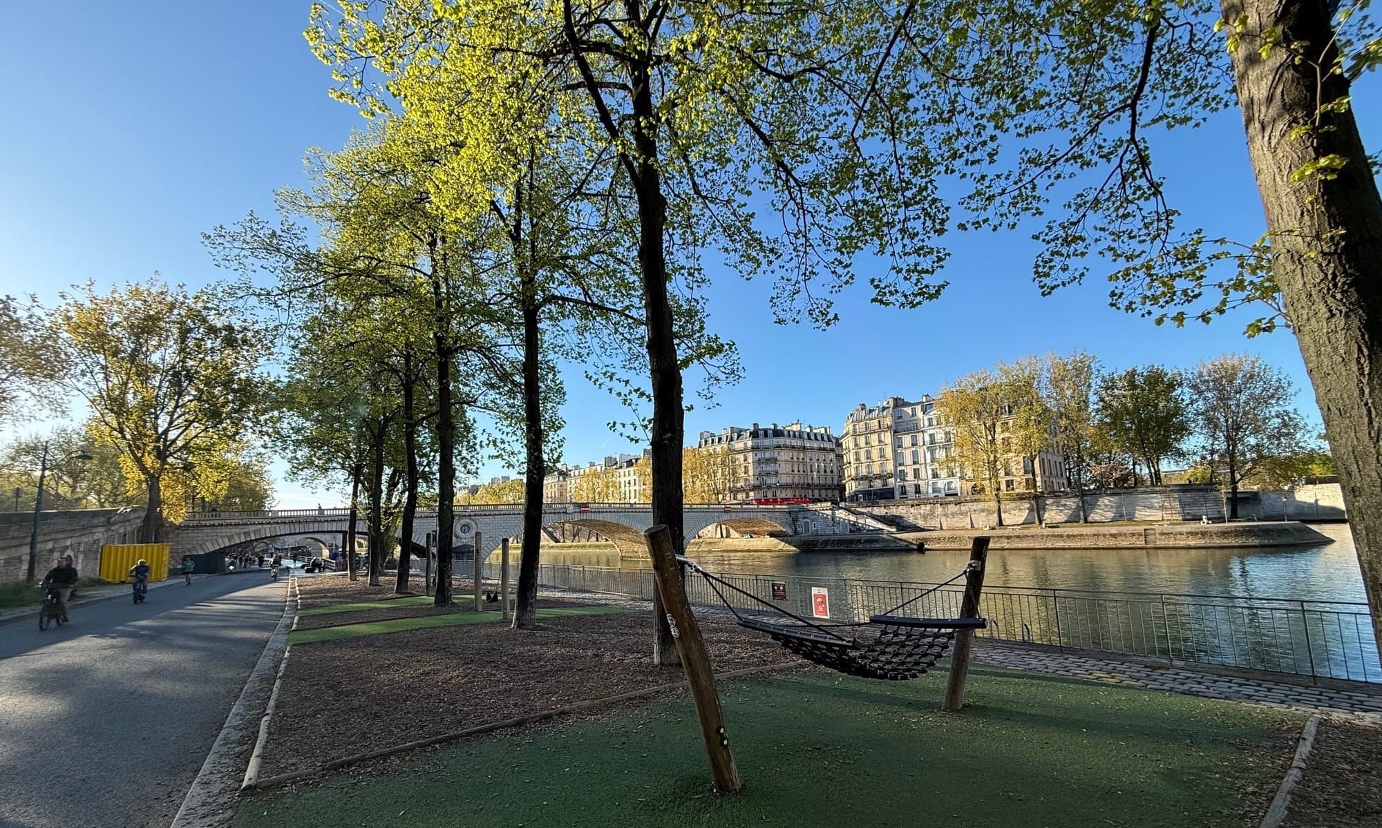 Parisians have always embraced their river — you could almost gauge the temperature by simply counting the number of rosé bottles opened for impromptu picnics — but as the water quality improved, so did access to the river itself. Before the bike highways and swimming holes of the Hidalgo administration there was Paris Plages, the summertime "beaches" that took over streets along the river starting two decades ago. Within that context, Hidalgo's pandemic-era decision to close these freeways and tunnels to cars were not necessarily dramatic one-off actions, but building upon a very popular summer pilot program. And now they're permanent. In addition to the cycling infrastructure, the quais are dotted with playgrounds, widened sidewalks, benches, and newly planted trees.