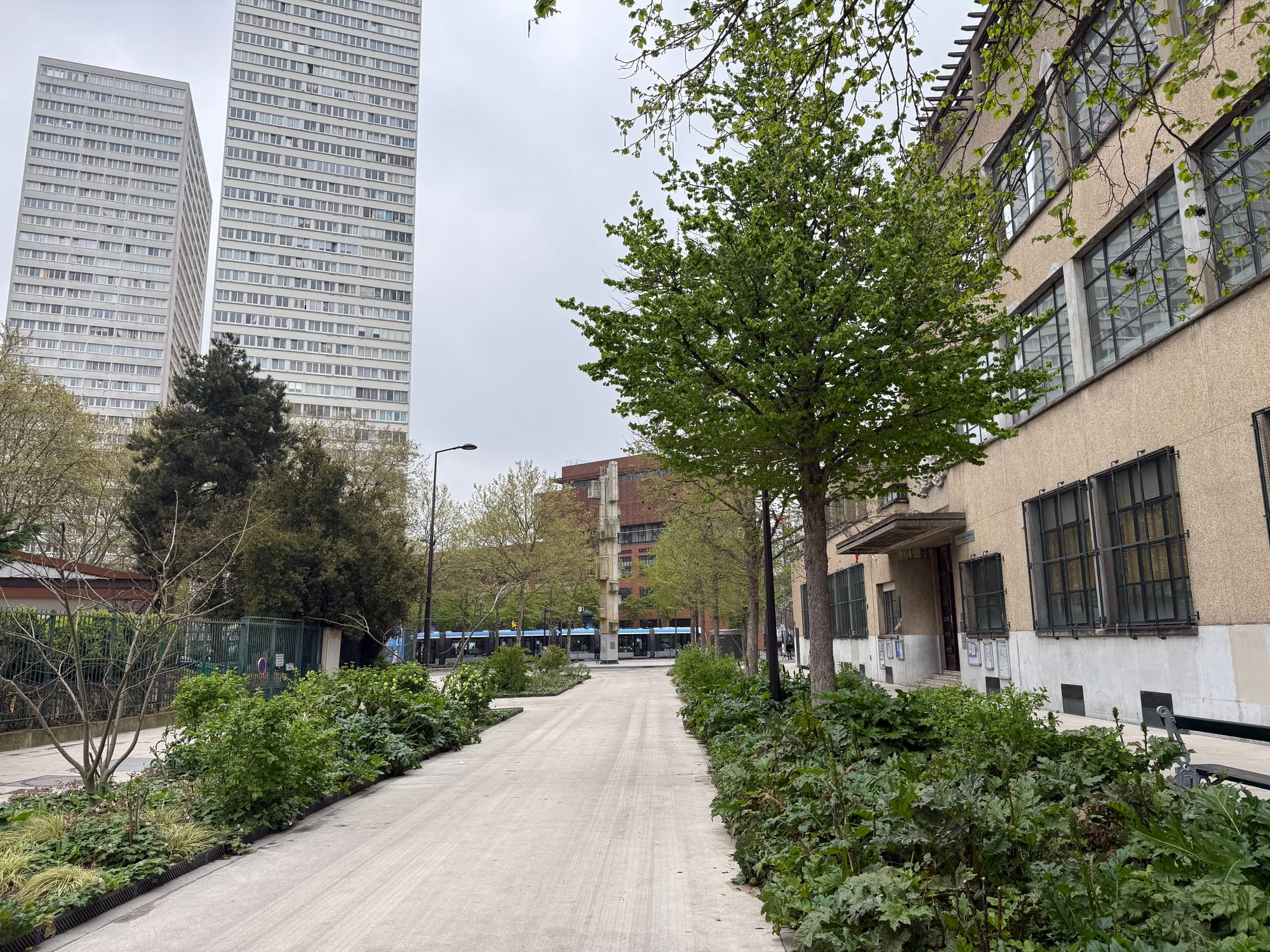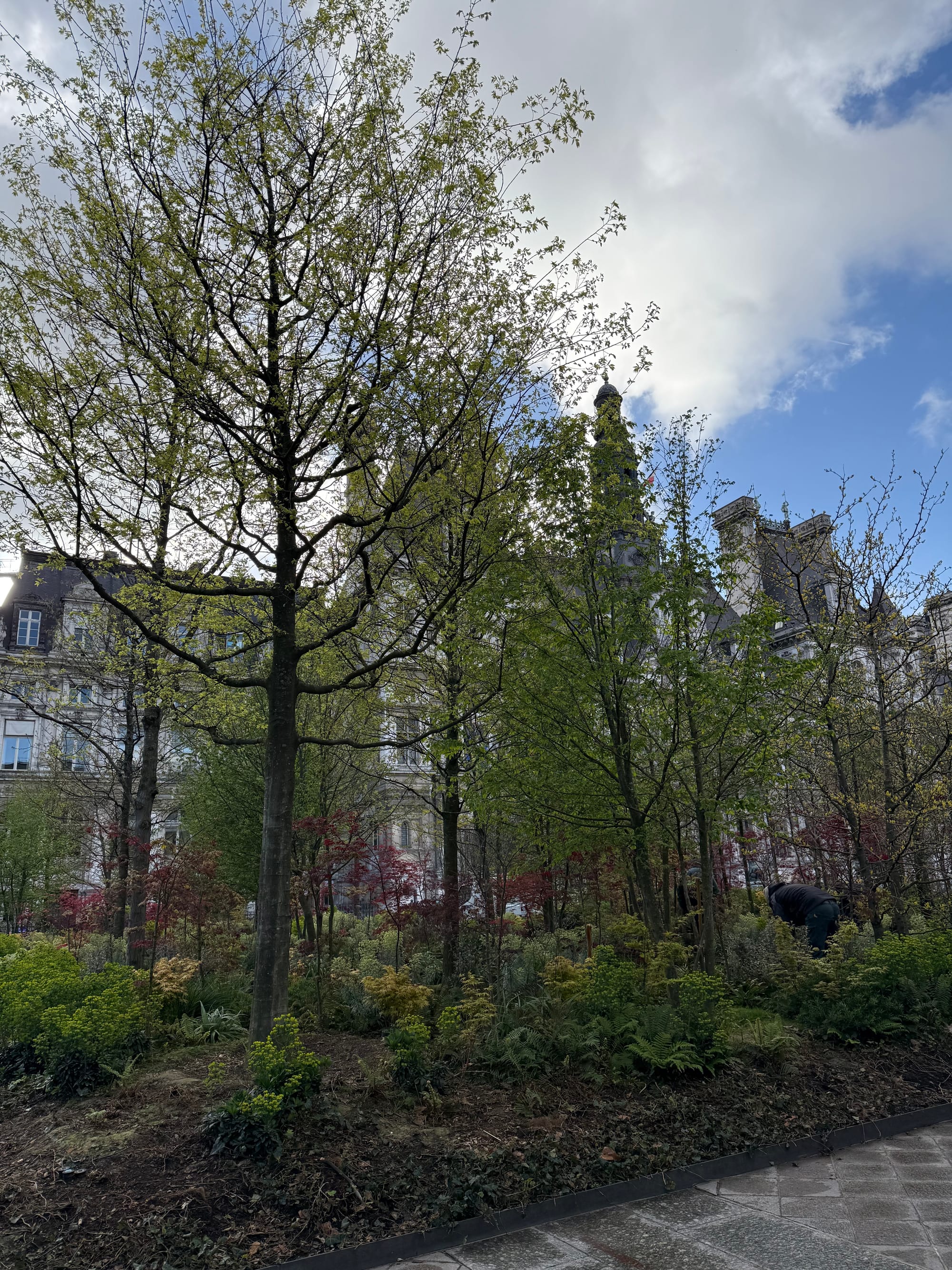 Which is why Paris is doing exactly what I've been begging LA to do forever: planting trees not just in cramped sidewalk wells, but in the very places previously used to drive and park cars. The big depaving push started a decade ago, when Hidalgo began planting a few of the city's signature plazas to combat extreme heat. The most spectacular example of these new urban forests is right outside l'Hôtel de Ville, the center of Paris's municipal government. Wandering through the feathery spring shade was a living demonstration of the city's climate goals: biodiversity increased, benches cooled, stormwater absorbed — which helps to keep the Seine clean; it's truly all connected!