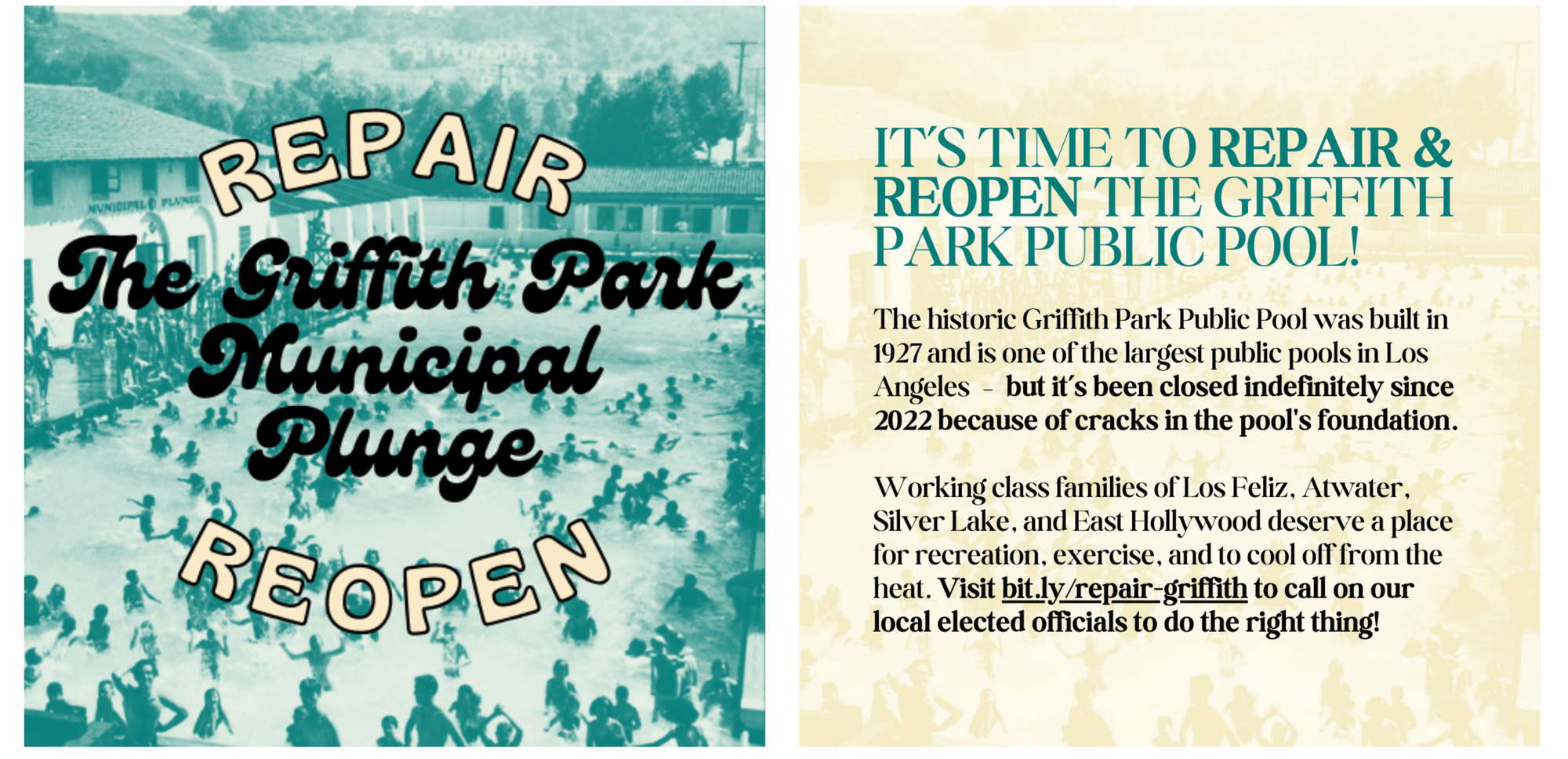 "How can our city spend public funds on preparing for the future Olympic games when one of our finest public spaces of recreation and athletics sits vacant and in disrepair?" asks the Repair & Reopen the Griffith Park Public Pool petition.