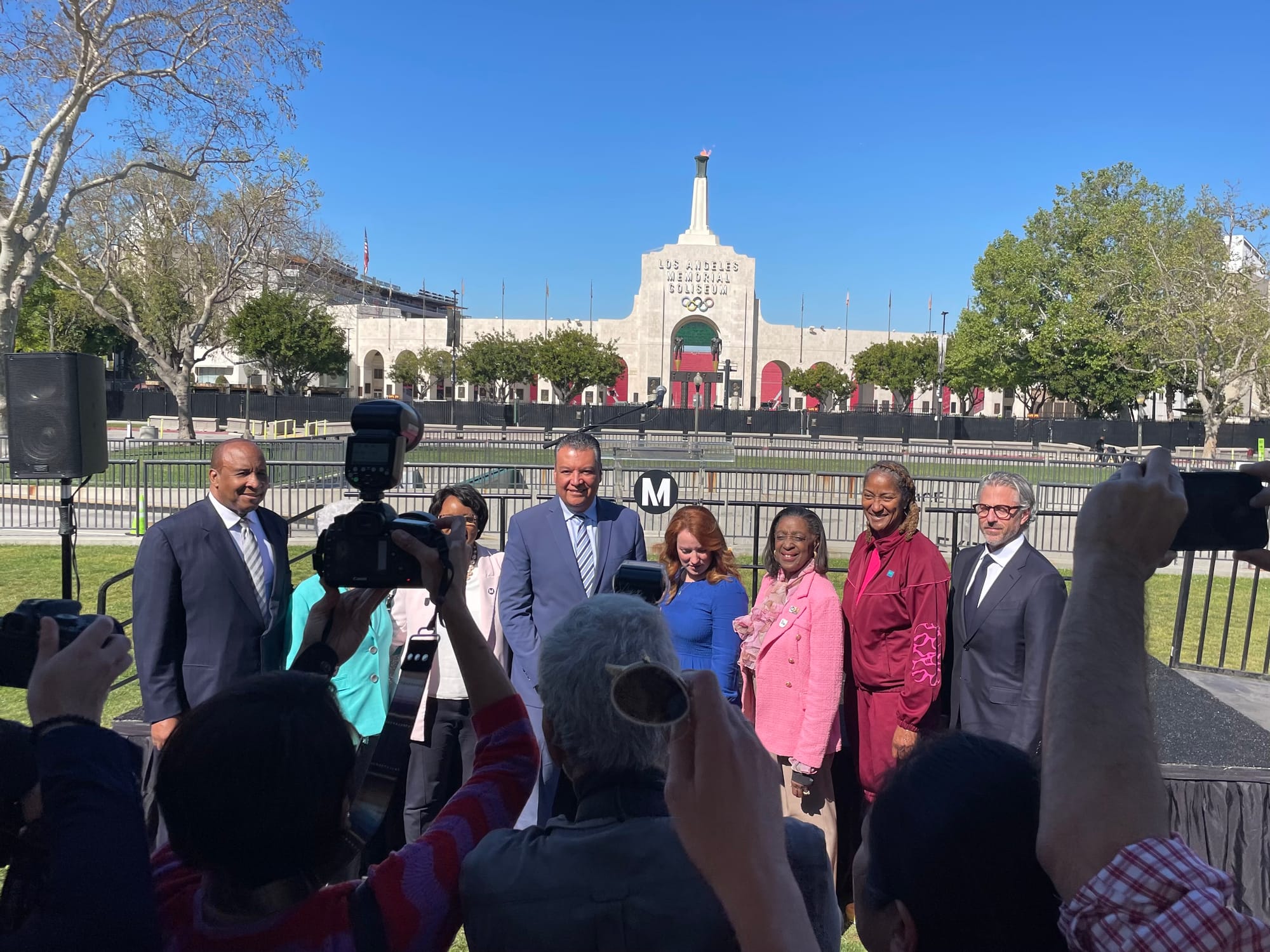 This newly announced LA strategy for 2028 — urge the community to do the heavy lifting and call the mayor's office when you're ready to promote it — might sound good in theory, like we're producing the ultimate grassroots games. On the panel was Jason Foster, president and COO of Destination Crenshaw, probably the best example of a community-driven legacy project: a $100 million Black cultural corridor that threads 1.3 miles of Crenshaw Boulevard with public art, parks, and hundreds of new trees. "I think the only reason everybody south of the 10 is not vehemently against the Olympics is because this project started 10 years ago," he said Friday. But Foster says projects like this still need more guiding strategy from the city. "I think that what we did can happen in other communities," he said. "But I think it helps if our public municipality pushes them forward, and doesn't rely on the community to actually bootstrap it."