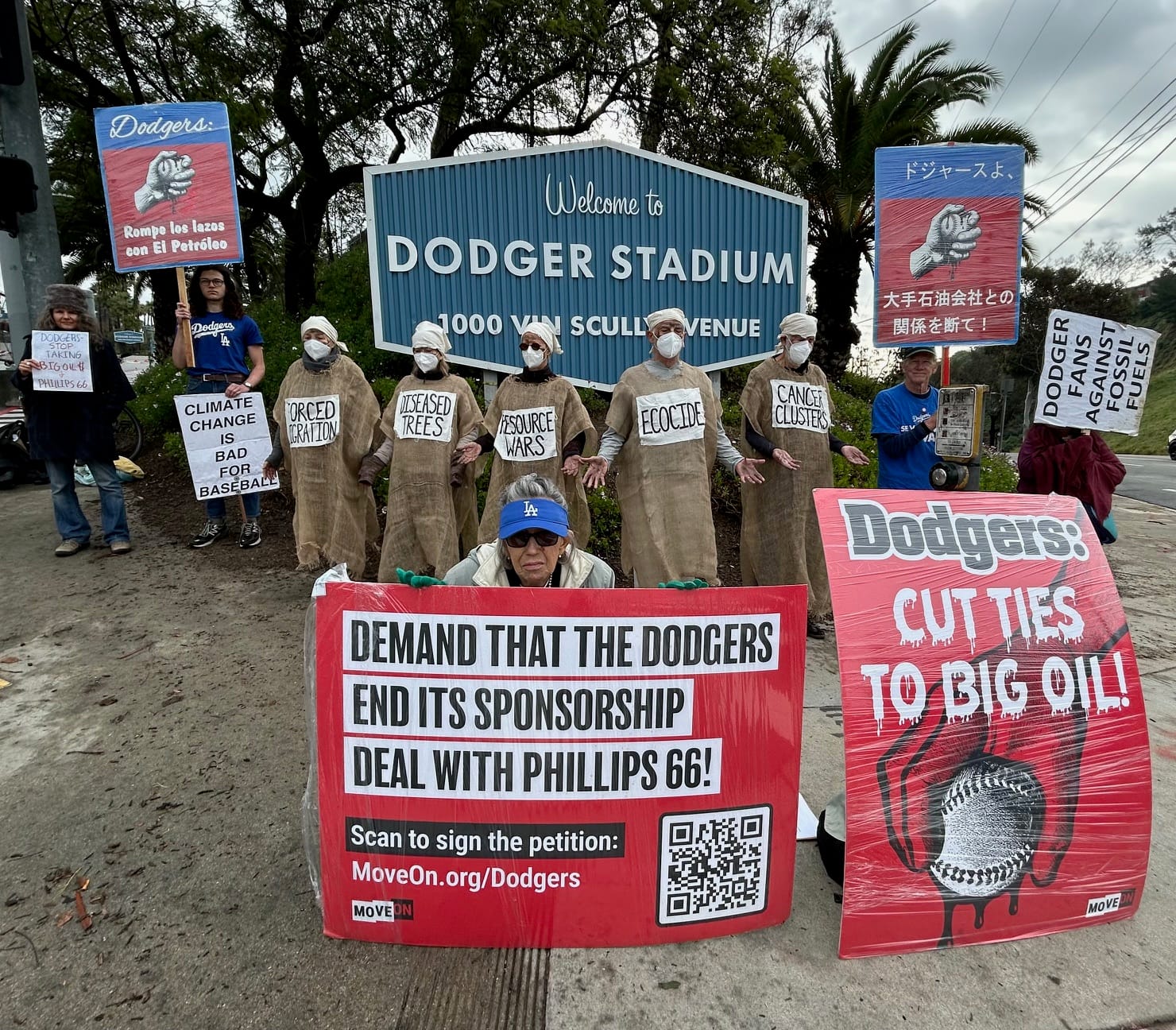 Why do LA's megaevent venues still have big oil sponsors? Fans against fossil fuels coordinated a 10-stadium protest last week to urge team owners to dump their big oil sponsors. Here in LA that meant demanding Dodger Stadium cut ties with that giant 76 ball in the outfield. (Although they will have to cover it up for Olympic baseball.) I was particularly intrigued to hear from the athletes who are supposed to achieve their personal best in increasingly dangerous conditions. "In the last five years, I've had to cancel training because of flooding and wildfire smoke; I've had to compete in extreme heat waves with track surfaces exceeding 140 degrees; and I've had a heat stroke while competing," said Sam Mattis, a discus thrower training for 2028. "The companies polluting our atmosphere and endangering sports have no business doing business with the teams and games we love."